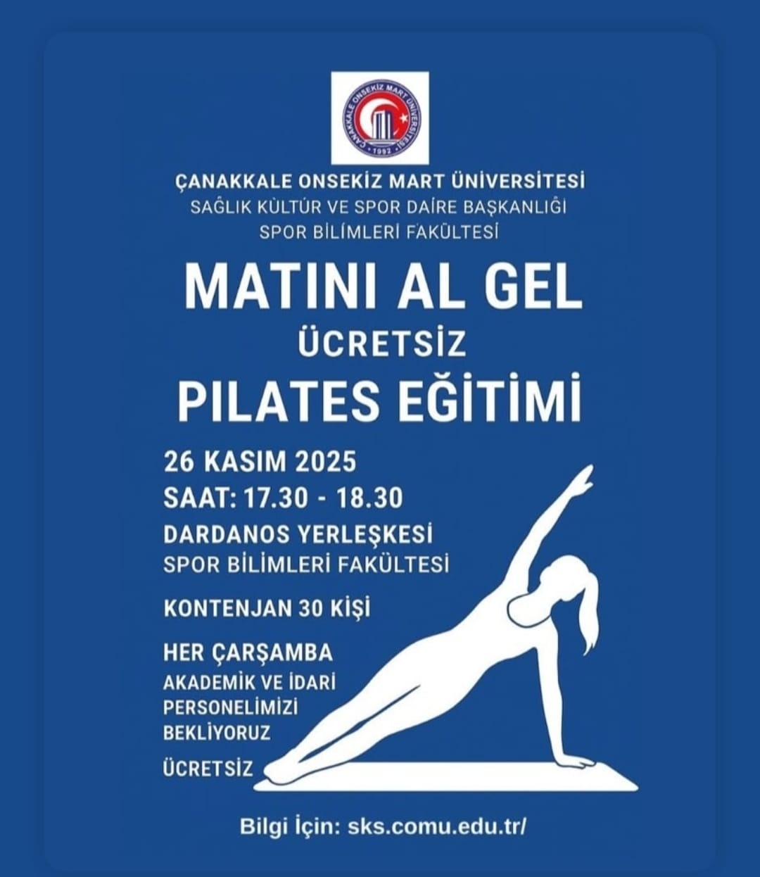 Üniversitemiz akademik ve idari personeline yönelik ücretsiz Pilates kursu başlıyor!